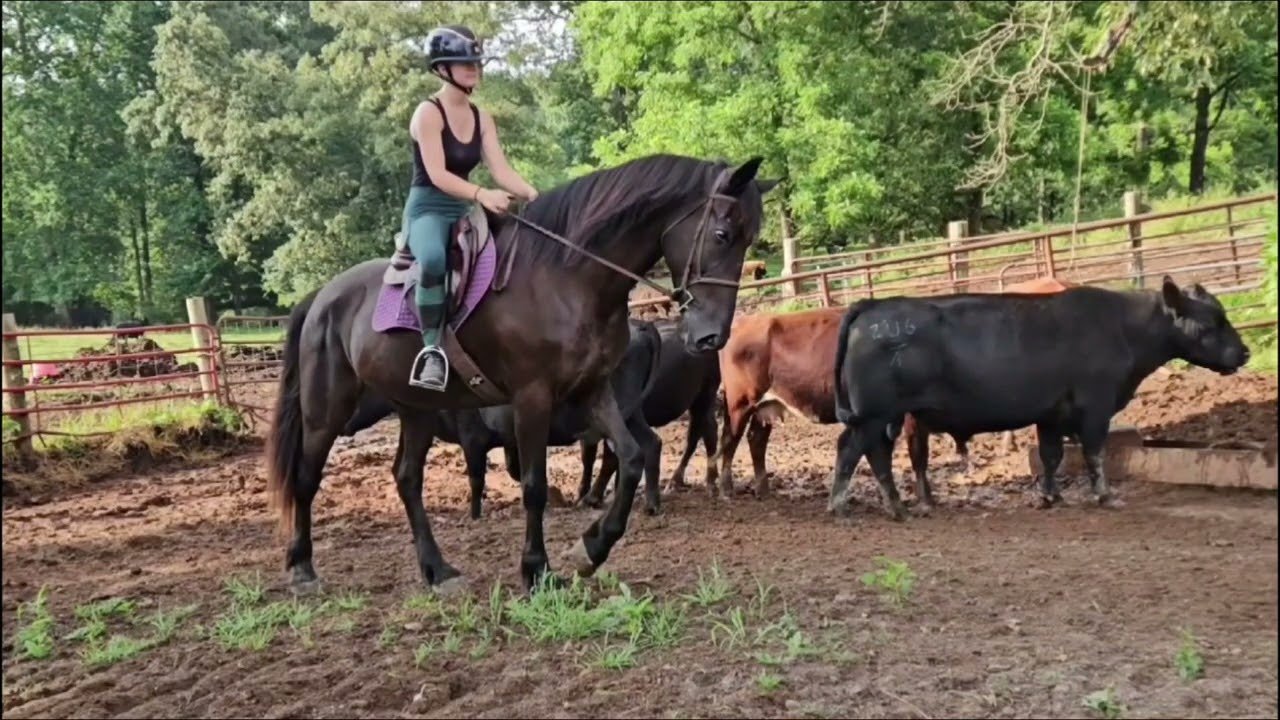 Ursula 2013 Friesian Sporthorse Black Mare. 16.2 hds. WTC Picks up leads. Uphill. Lovely mover. Nice for dressage. Lighter to the aids than you would expect with her size. Big girl, freely moving forward. Excellent on trails and on the road even with a train going over head, more than once. Drives single and double also. Sound. No vices. $8500