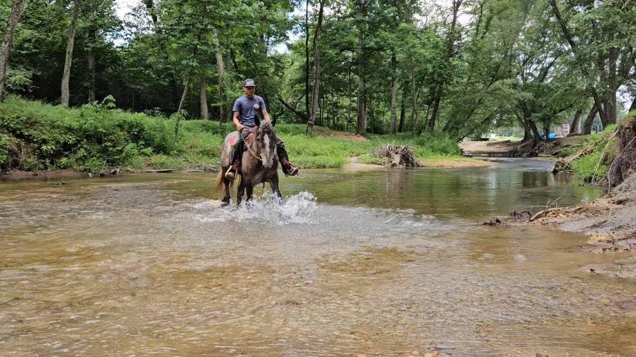Felix 2023 Gypsy VannerX Gelding 16hh Ride & Drive. Vet Check on File. Barefoot. Sound No VicesFelix is a rare find — with the brain, size, and personality that make him the kind of horse people dream about. Standing 16hh, he’s already broke to ride and drive, and showing all the qualities of a future superstar — or just your best trail buddy today. WTC, picks up both leads. Rides and drives – safe and willing. Super quiet, kind, and gentle – a true kick ride. Hauled off property for trail adventures – confidently crossed bridges, creeks, and even rode in the river. Unbothered by trains and traffic – even ridden bareback through it all. One of the best Gun Safe horses we have.Fox hunted and was an absolute saint. Absolutely wise beyond his years. Brave, willing, and incredibly sweet – truly a joy to be around. Easy to catch, loves people, stands to mount, and gets along well in turnout. Great ground manners – clips, ties, trailers, stands for farrierFelix is a phenomenal young prospect for anyone looking for a quiet and versatile horse with an unbeatable temperament. Whether you're looking to trail ride, drive, hunt, or just enjoy a dependable and gentle partner, Felix is ready for it all.✅ Vet check on file and available✅ Barefoot, sound, and has no vices $15k
