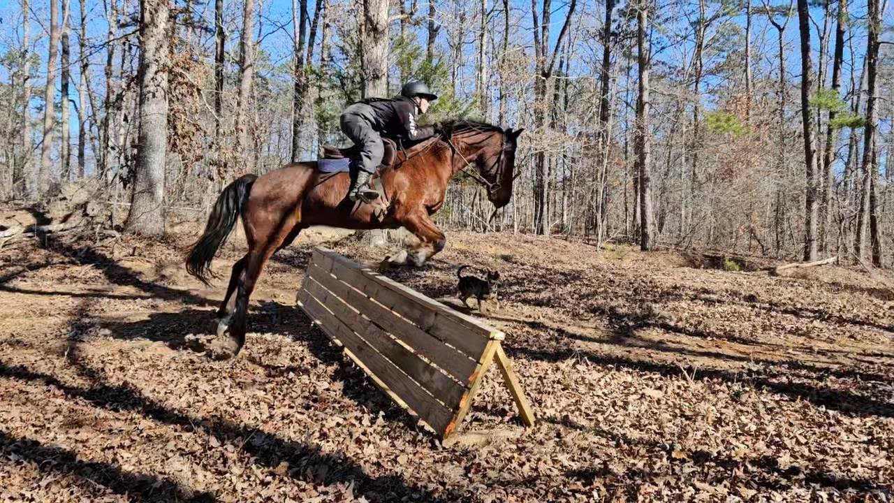 Johan the Magnificent 2018 Friesian/Andalusian Bay 15.2 hds Gelding. Fox Hunted New Years Day with Shakerag. He was wonderful. WTC Picks up leads. Nice collection. Would excel in Dressage. Fun to jump, brave and willing. Hauled off property to cross bridges, creeks and ride out in the river. Johan was willing and fun to ride. Well started driving. Ridden by children. Kick ride. Ridden thru our cattle. Good Minded! Vet check on file and available. Barefoot. Sound. No vices. $15k